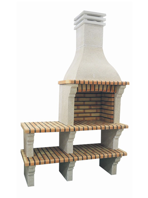 Churrasqueira em betão britado, com tijolo matizado, com 2 bancadas